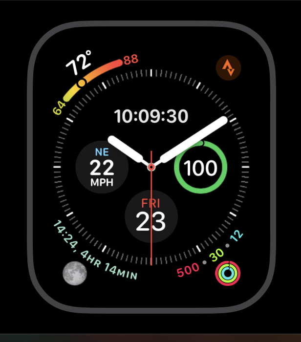 I am looking at my watch now: 93 degrees, South wind at 3 (hope that picks up later), an unread message, killing it on my rings today! Oh, and I would have forgotten, but my Apple Watch reminds me: tonight is a full moon!
